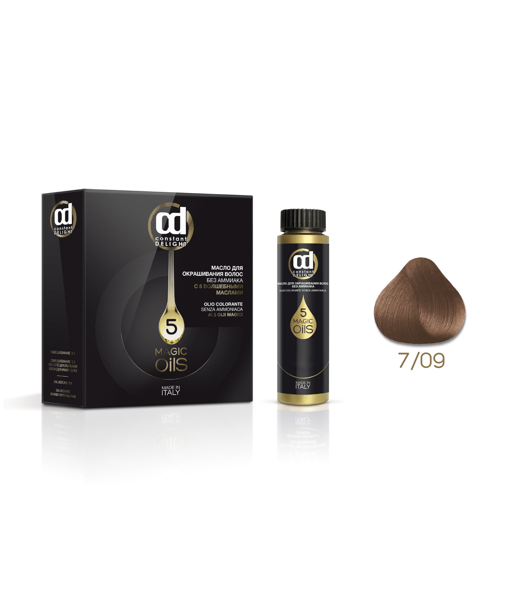 5 магических масел в составе красителя послойно закрепляют пигмент в структуре волоса и разглаживают кутикулярный слой, создавая тем самым волшебный многомерный мультитональный блеск. Питание и увлажнение волос в процессе окрашивания благодаря маслам арганы, хлопка, авокадо, жожоба, макадамии. Стойкий, глубокий цветовой результат, палитра из 51 интенсивного модного оттенка, легко комбинируемых между собой для получения индивидуальных цветов, превращают 5 MAGIC OILS в магический кристалл в руках мастера. Может использоваться для получения более темных тонов, окрашиваний тон в тон, тонирования мелированных осветленных прядей, закрашивания седины, осветления волос до 2 тонов.