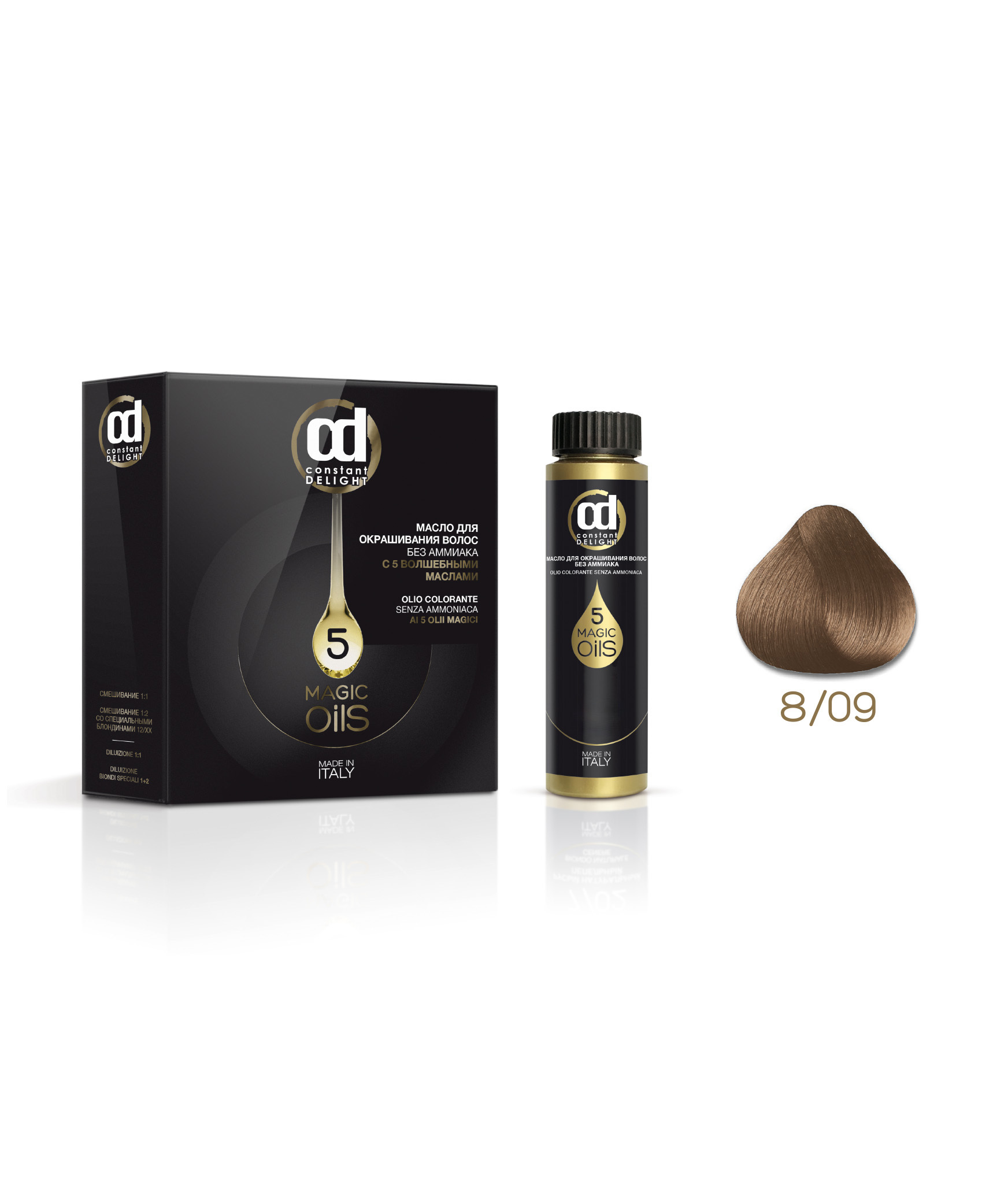 5 магических масел в составе красителя послойно закрепляют пигмент в структуре волоса и разглаживают кутикулярный слой, создавая тем самым волшебный многомерный мультитональный блеск. Питание и увлажнение волос в процессе окрашивания благодаря маслам арганы, хлопка, авокадо, жожоба, макадамии. Стойкий, глубокий цветовой результат, палитра из 51 интенсивного модного оттенка, легко комбинируемых между собой для получения индивидуальных цветов, превращают 5 MAGIC OILS в магический кристалл в руках мастера. Может использоваться для получения более темных тонов, окрашиваний тон в тон, тонирования мелированных осветленных прядей, закрашивания седины, осветления волос до 2 тонов.