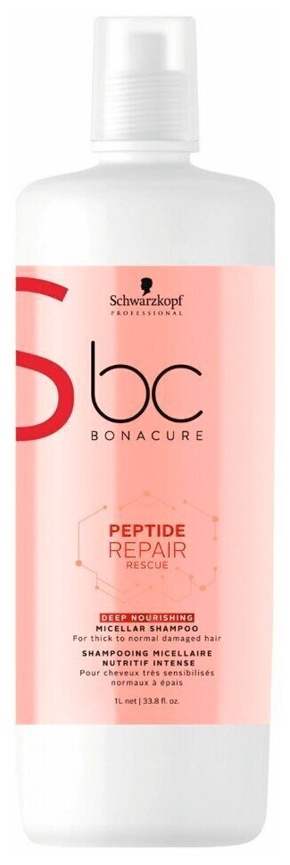SCHWARZKOPF PROFESSIONAL BC Peptide Repair Rescue Шампунь мицеллярный восстанавливающий, 1000 мл