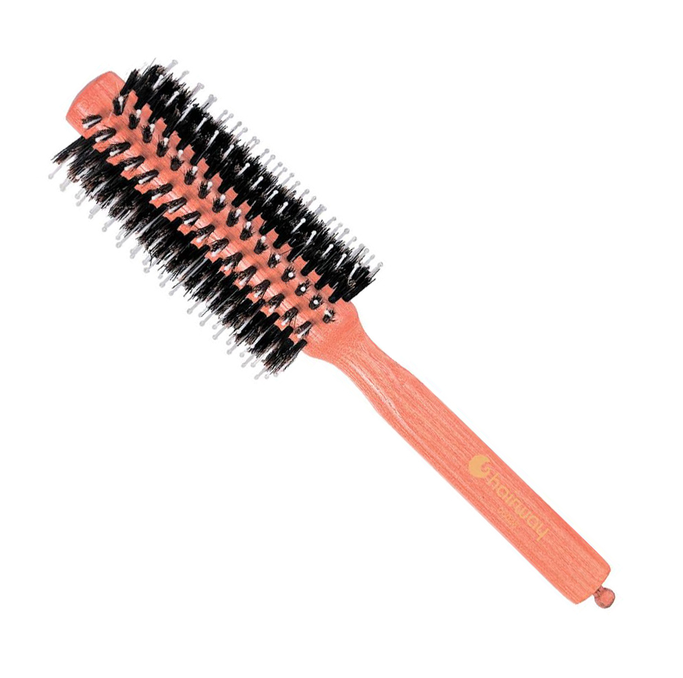 Брашинг на деревянной основе с комбинированной щетиной от Hairway как инструмент для укладки волос предполагает одновременное создание прически и сушку.