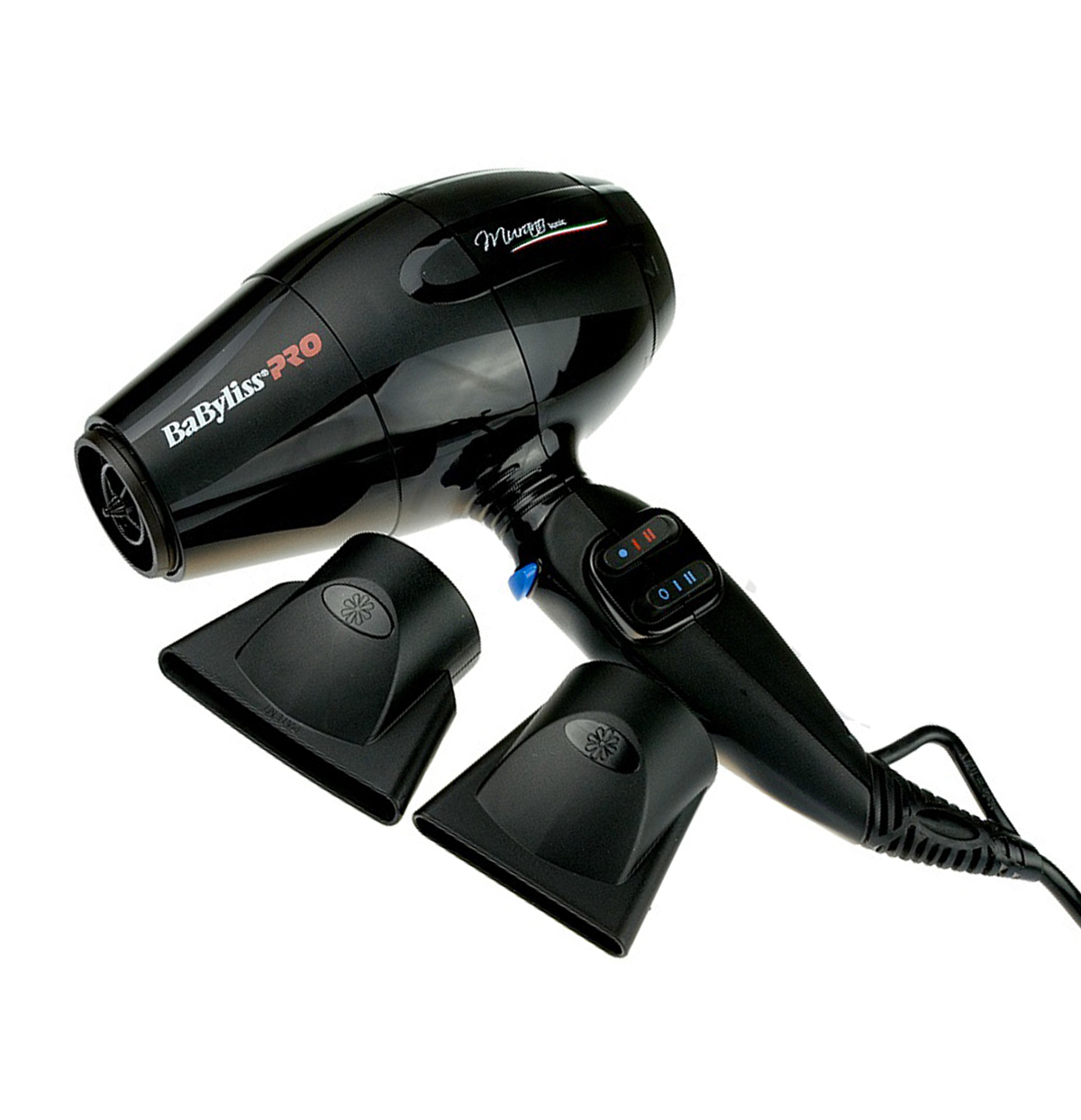 BaByliss Pro Murano профессиональный фен для волос. Произведено в Италии, мощность 2000 Вт, 2 насадки, система ионизации, вес 510 гр, 6 режимов работы, кнопка холодного воздуха, 2 сопла, компактный корпус 16.5 см.