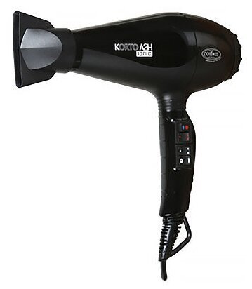 Фен Korto KA2 H высокой мощности с ионизатором в компактном корпусе имеет кнопку Cold Shot, выдувает воздушный поток в 6 комбинациях скорости и температуры. Инструмент весит всего 522 г и имеет современный эргономичный дизайн. Он подходит для использования в салоне красоты и быстрой сушки волос в домашних условиях. Ионизатор выдуваемого воздуха придает локонам гладкость и блеск, сводит к нулю образование «статического электричества», а также уменьшает время сушки, она становится быстрее даже при использовании более низкой температуры.