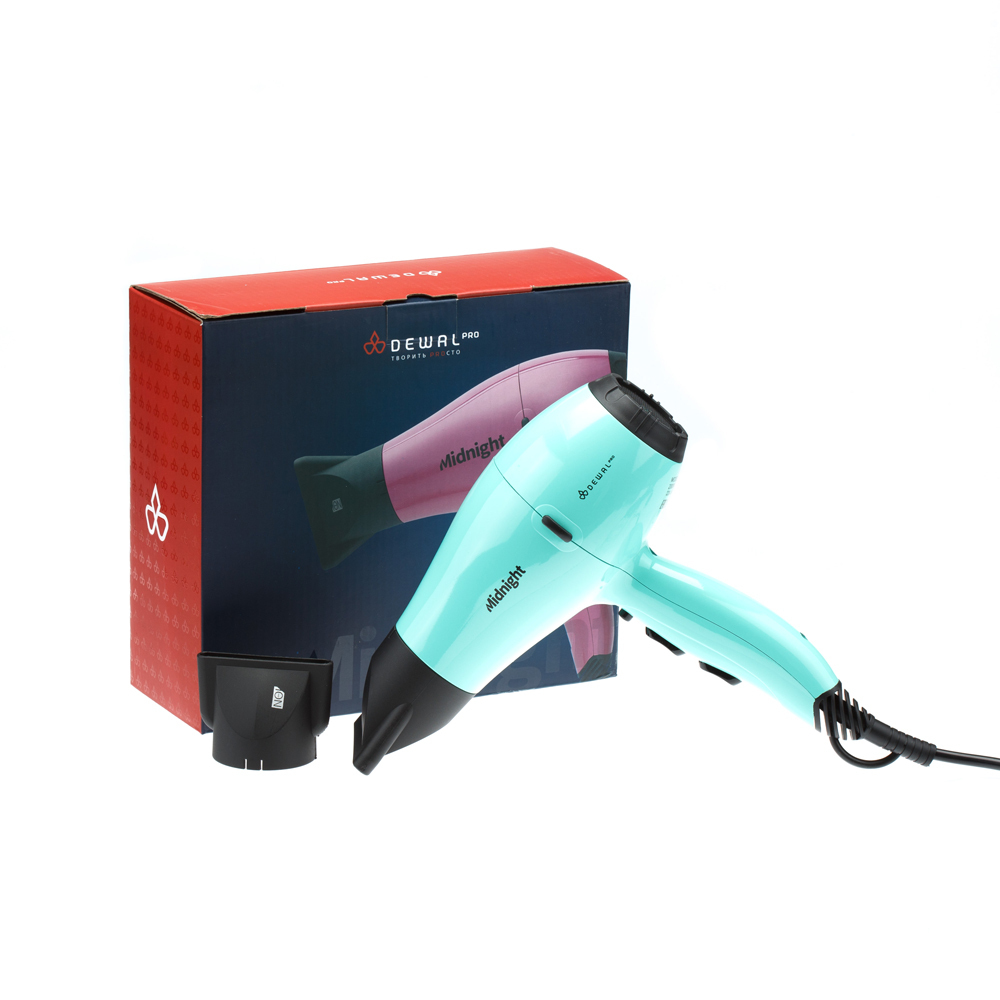 Фен DEWAL Midnight мятный 2000Вт, иониз 2 насадки