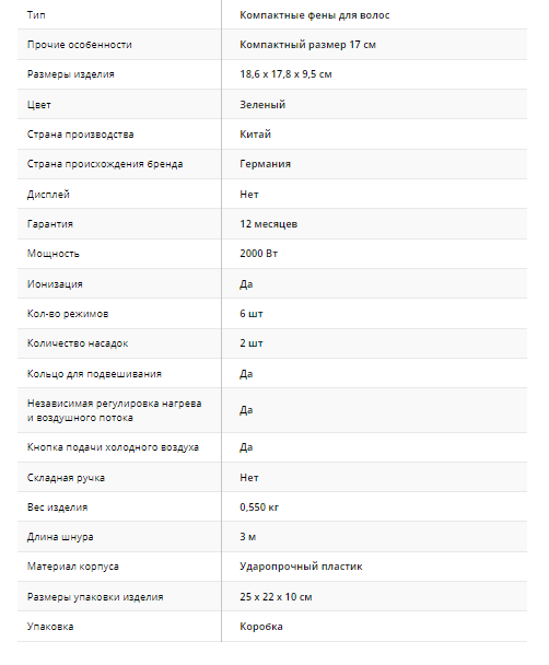 Фен имеет оптимальный размер и хорошую сбалансированность, и идеально ложится в руку.