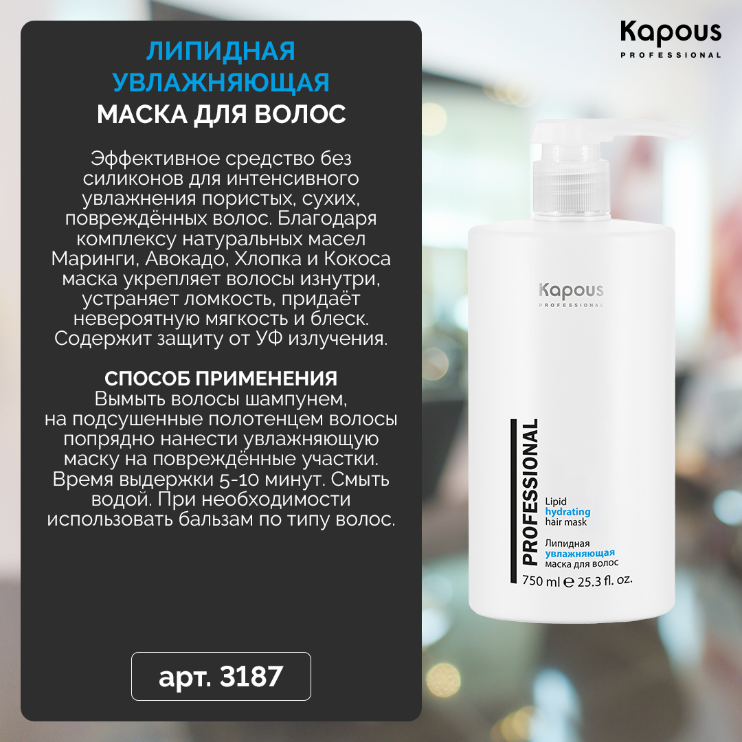 Липидная увлажняющая маска д/волос Kapous 750 мл