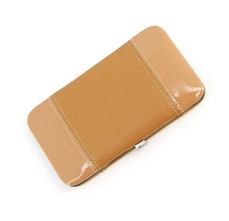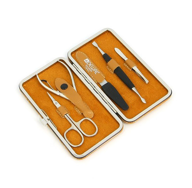 Маникюрный набор Dewal. Футляр из натуральной кожи коричневого цвета, 5 предметов. Отделка инструментов - блестящий никель.