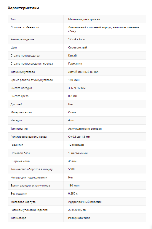 Кнопка включения находится очень удобно – сбоку корпуса, прямо под большим пальцем. Благодаря этому не требуется лишних движений при выполнении стрижки, и нагрузка на кисть существенно снижается.