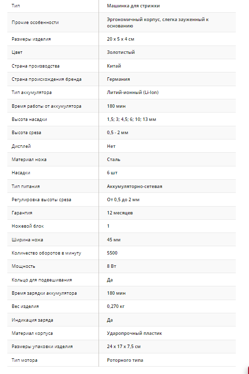 Нож сделан из легированной стали, его зубцы слегка закруглены, таким ножом удобно делать плавные движения при работе. Закругленные зубцы ножевого блока слегка приподнимают волосы, что не только очень удобно во время стрижки, но и обеспечивает бережное отношение к коже головы. Плавная регулировка от 0,5 до 2,4 мм позволяет добиться нужного вам результата даже без частой смены насадок. В комплекте есть необходимые барберу насадки.