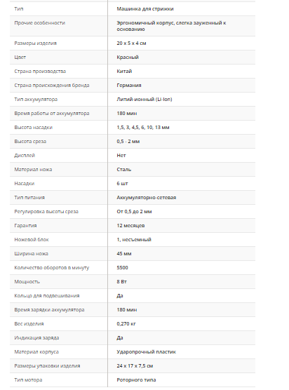 Отличительная особенность этой машинки эргономичный корпус, слегка зауженный к основанию. Машинку очень удобно держать в руке благодаря легкому весу, специальным углублениям для пальцев, и рифленой поверхности, которые расположены на тыльной стороне корпуса. Вес машинки практически не ощущается, она не выскальзывает из рук даже во время самой продолжительной работы.