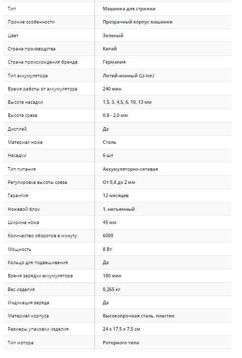 У машинки 03-081 Green BARBER STYLE NEON прекрасные технические характеристики.