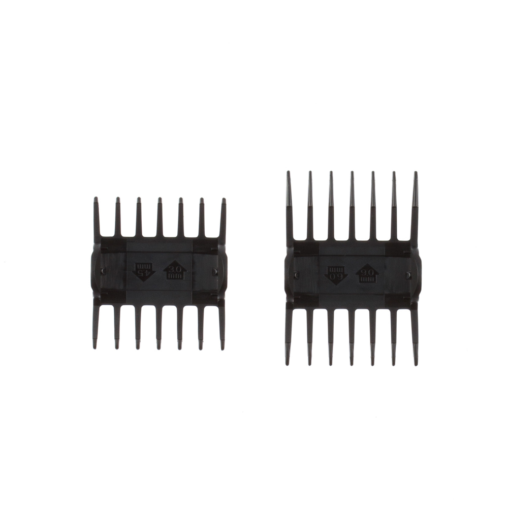 Триммер 03-066 BLACK MINI предназначен для создания контуров, плавных переходов и оформления бороды. Высота среза триммера 0,3 мм, для других длин можно использовать универсальные насадки, которые идут в комплекте (3-4,5 мм, 6-9 мм). Зубчики ножевого блока у триммера глубокие, и это позволяет работать на расческе, а также делать линии, которые нужны при создании фейдов.