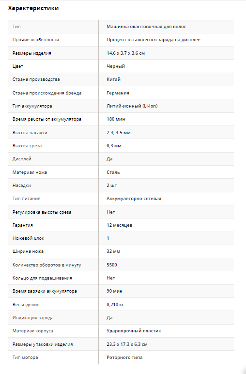 Полная зарядка аккумулятора занимает 90 минут, после полной зарядки аккумулятора триммер может работать непрерывно около 180 минут. Триммер 03-065 BLACK MINI оснащен аккумулятором нового поколения Li Ion без эффекта памяти. Это очень удобно, так как в случае разрядки аккумулятора вы можете продолжать стрижку просто подключив триммер к сети.