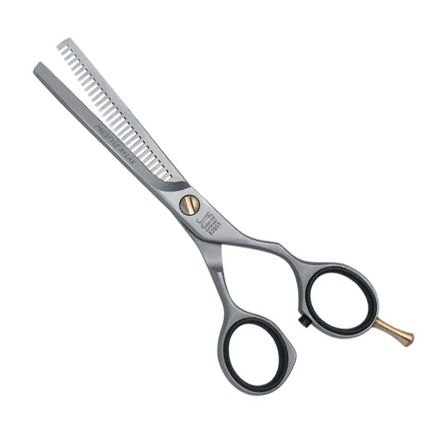 Профессиональные филировочные ножницы для начинающих мастеров, ученическая модель Jaguar Pre Style Relax. Оснащены съемным упором, ограничителем хода, мягкими вставками в кольцах. Зубцы с микронасечкой — это гарантирует высокую точность среза. Ножницы изготовлены из высококачественной нержавеющей стали.