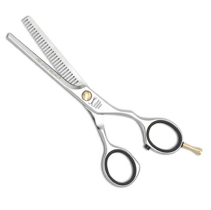 Ножницы Relax P - профессиональные филировочные ножницы с глянцевой полировкой, модель из ученической серии ножниц Jaguar Pre Style. Изготовлены из устойчивой к износу и коррозии высококачественной нержавеющей стали, оснащены 28 зубцами с микронасечкой. Зубцы расположены на одном полотне, второе заточено гладко.