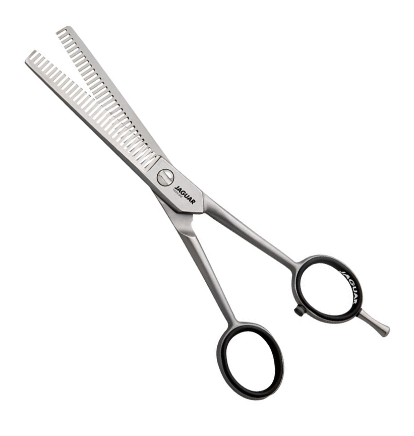 Стильные двусторонние парикмахерские ножницы Jaguar A Satin для филировки, профессиональная модель с 28 высокоточными призмовидными зубцами. Классическая форма и эргономичные ручки делают работу мастера комфортной — ножницы позволяют максимально расслабить кисть руки во время работы.