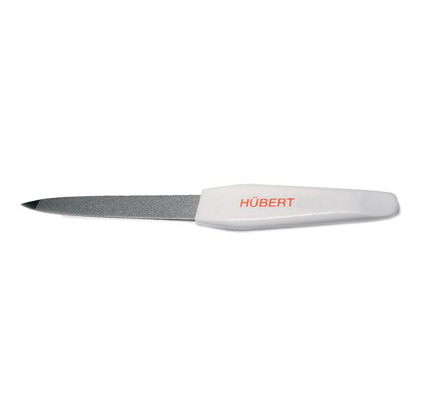 Алмазная пилка для ногтей Hubert поможет придать ногтям нужную форму. Алмазное напыление не приводит к травмам ногтевой пластины. Алмазная пилка для ногтей похожа на своеобразную "наждачку". Ее можно использовать и для приведения в отличное состояние кожи вокруг ногтя. Ваши руки будут смотреться потрясающе. Обработанная кожа будет тоньше. С помощью алмазной пилки можно заниматься также шлифовкой ногтей. За самой алмазной пилкой легко ухаживать. Она не отличается хрупкостью, как керамика или стекло. Ее нет нужды хранить в специальных чехлах. Для удаления частиц кожи с пилки ее достаточно помыть в проточной воде.