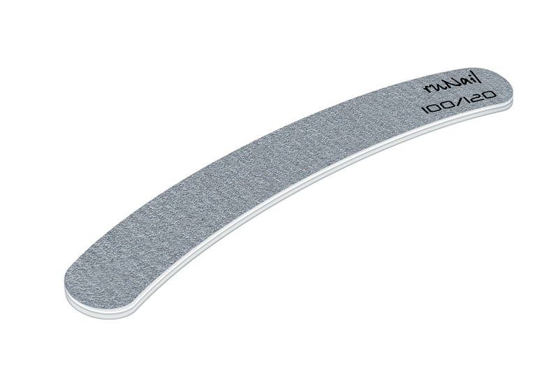 Профессиональная пилка для искусственных ногтей серого цвета в форме бумеранга. Абразивность пилки: 100/120. Используется для придания формы и подготовки зоны у кутикулы в акриловой технологии наращивания ногтей.