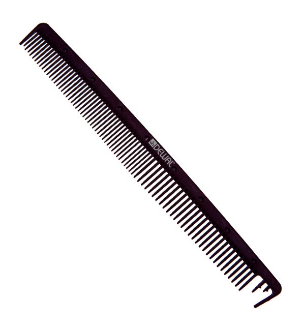 Расческа рабочая комбинированная узкая от DEWAL - прочная, но в тоже время гибкая, чрезвычайно износостойкая. Благодаря обработке высокой температурой, расческа не травмирует кожу головы, гладкие зубцы легко скользят сквозь волосы. С добавлением карбона.