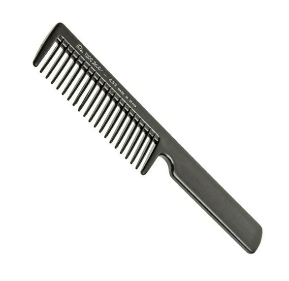 Расческа-гребень с ручкой Eurostil с редкими зубчиками выполнена из пластика высокого качества. Гребень хорошо распутывает волосы и используется при расчесывании влажных и мокрых волос. С его помощью можно наносить маски и бальзамы на волосы. За счет закругленных зубьев не травмирует кожу при расчесывании.