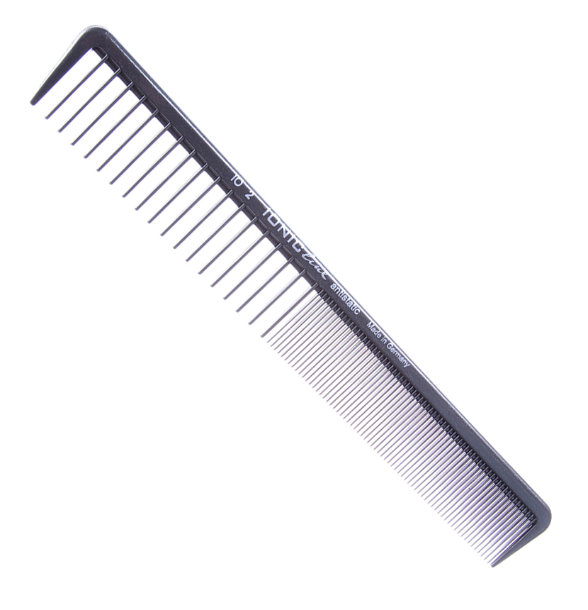 Профессиональная расчёска Ionic Line Triumph из поликарбоната с технологией ионизации, эластичная и прочная, устойчива к высоким температурам, не деформируется при использовании с химически активными веществами, антистатична. Идеально гладкая обработка зубьев лёгко скользит по волосам, не повреждая их при расчёсывании. Расчёска универсальная с комбинированными широкими и узкими зубьями, подходит для точных стрижек волос в одну длину, слоями и градуировкой. Благодаря совершенной эргономике, её удобно держать в руке.