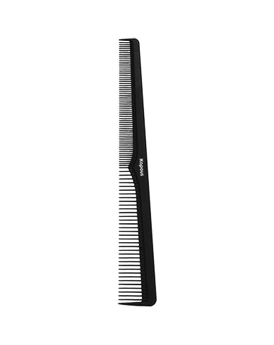 Карбоновая расческа черного цвета для укладки и стрижки волос. Главная отличительная способность карбоновой расчески - она не плавится под воздействием высоких температур, поэтому отлично подходит для работы с термоинструментами, фенами, брашингами, утюжками. Подходит для мужских стрижек.