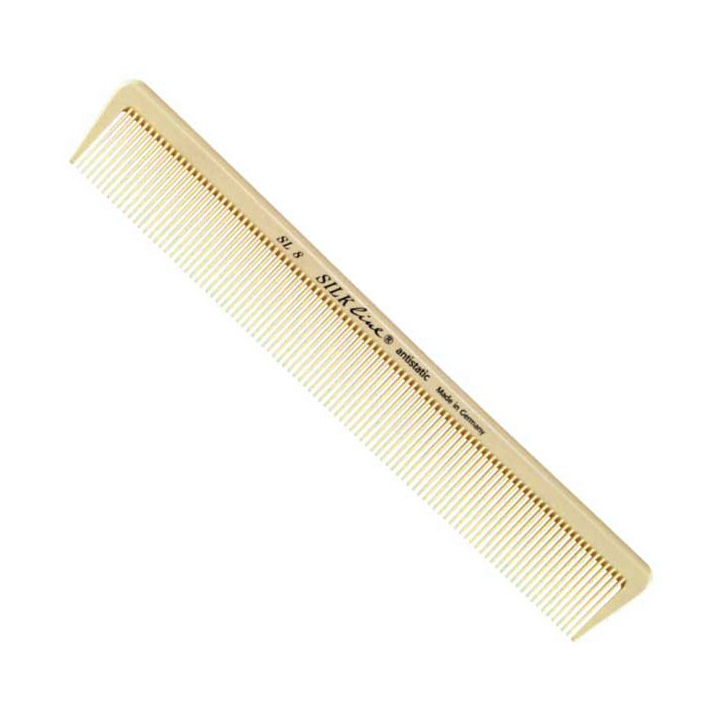 Расческа силиконовая рабочая от Triumph с чередующимися частыми и редкими зубьями оказывает минимальное агрессивное воздействие на луковицы волос и кожу головы. Силикон, используемый компанией Triumph для этой серии расчёсок, обеспечивает великолепное скольжение по волосам, а так же является высокопрочным, гибким, термо и химически устойчивым материалом. Кроме того, расческа имеет гипоаллергенное антистатичное покрытие.