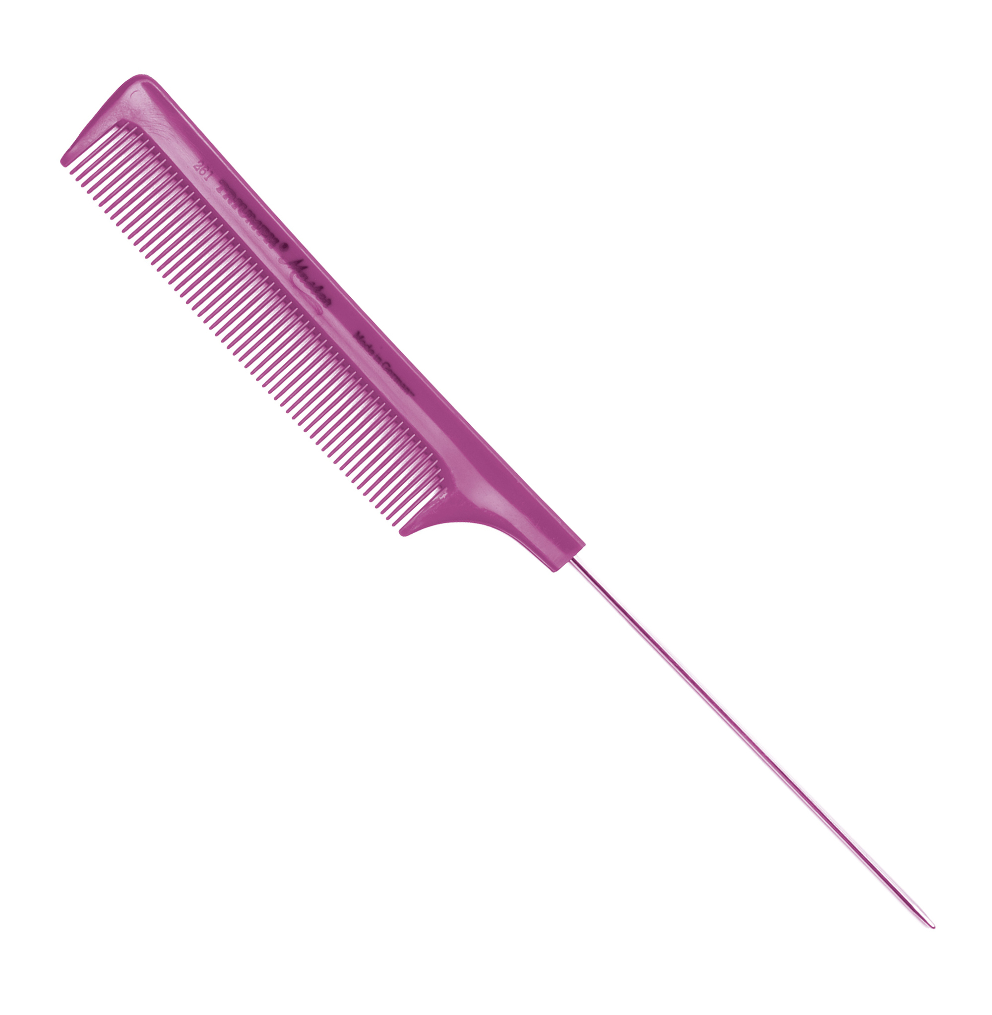Профессиональная расчёска Master Triumph из высококачественной пластмассы, гибкая и прочная, устойчива к высоким температурам, не деформируется при использовании с химически активными веществами, антистатична. Идеально гладкая обработка зубьев лёгко скользит по волосам, не повреждая их при расчёсывании. Расчёска-"хвостик" с металлическим штифтом и зубьями одной длины подходит для коротких стрижек, тушёвки, причёсок, плетений, начёса, сложных укладок, мелирования. Благодаря совершенной эргономике, её удобно держать в руке.