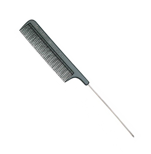 Расческа Eurostil из высококачественного пластика с металлическим хвостиком и зубчиками одной длины применяется при накручивании волос на бигуди и коклюшки. Также расческа очень удобна при начесе, укладке волос и при оформлении сложных причесок. Металлический тонкий хвостик позволяет быстро и равномерно разделить волосы на пряди.