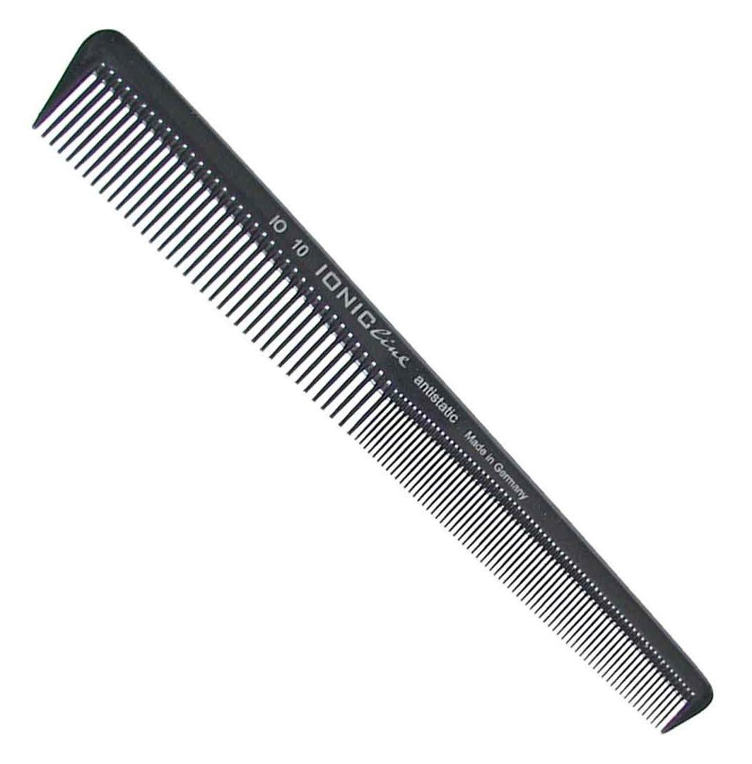 Профессиональная конусная расчёска Ionic Line Triumph из поликарбоната с технологией ионизации, эластичная и прочная, устойчива к высоким температурам, не деформируется при использовании с химически активными веществами, антистатична. Идеально гладкая обработка зубьев лёгко скользит по волосам, не повреждая их при расчёсывании. Расчёска с комбинированными зубьями для удобства стилиста, подходит для тушёвки волос (стрижка с плавным переходом от длинных волос к коротким). Благодаря совершенной эргономике, её удобно держать в руке.