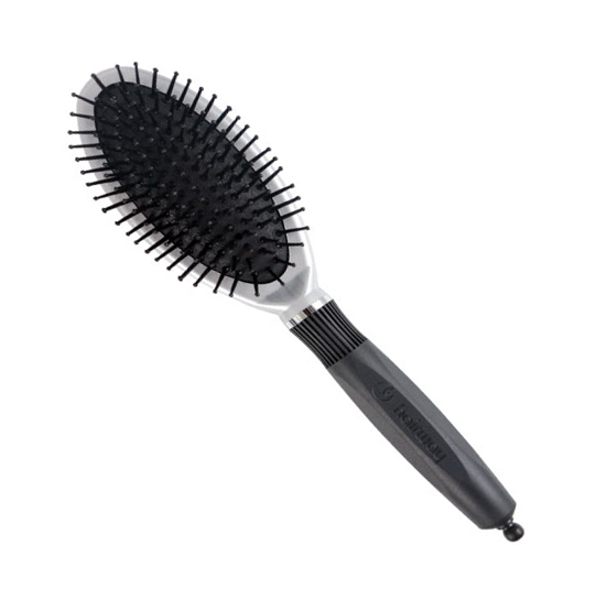 Вообще расческа для волос считается для парикмахера самым простым, но при этом незаменимым инструментом. Щётка массажная Hairway Black Style на пластиковой основе и пластиковыми штифтами идеальна для расчесывания любых волос и массажа кожи головы. Прорезиненная, многогранная ручка позволяет надёжно удерживать щётку во время работы. 9-рядная, овальная. Наличие удобного хвостика-разделителя позволяет сформировать пробор и выделить в прическе отдельные пряди, а по необходимости убирается в ручку. Имеет антистатическое покрытие.