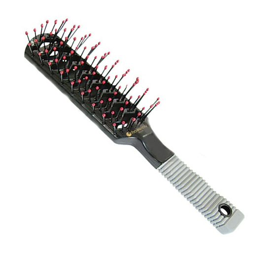 Пластиковая туннельная щетка "рыбья кость" Hairway Tunnel с нейлоновыми штифтами и прорезиненной ручкой предназначена для укладки и расчесывания волос. 9 рядов. Продувная расческа создана из высококачественного антистатичного пластика, отличающегося высоким уровнем прочности. В результате гарантирована лёгкая и безопасная укладка волос с обязательным созданием объема рядом в верхней части.