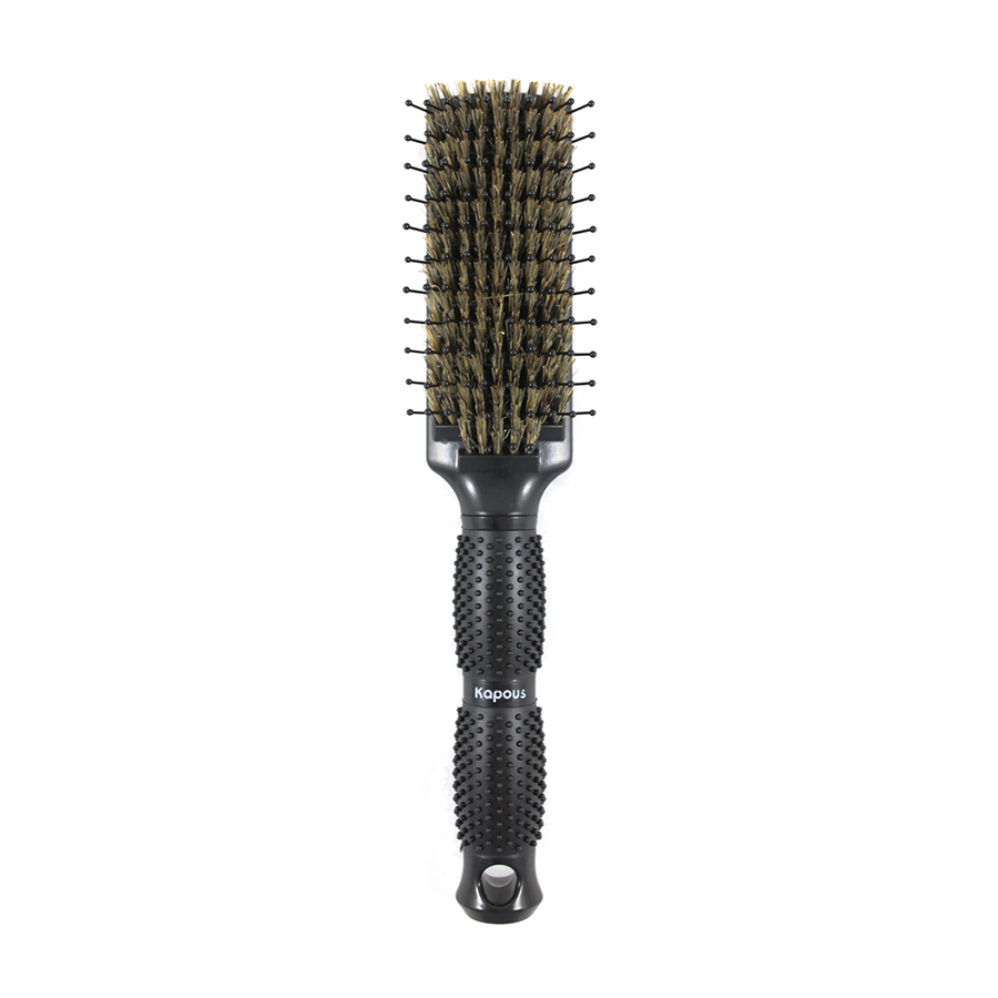 Лёгкий и комфортный брашинг/щетка на термостойкой пластиковой основе облегчит укладку и сэкономит время при работе. Гибкие штифты с закругленными кончиками из высококачественного термостойкого ионного нейлона обеспечивают максимальный захват и контроль над волосами во время работы, натуральная щетина, расположенная по углом к основанию обеспечивает исключительное «выглаживание» волос, делая их шелковистыми и блестящими. Сквозные отверстия в корпусе брашинга/щетки продуваются воздухом фена, что обеспечивает быстрое высыхание волос и фиксацию результата. Удобная прорезиненая ручка со специальным рельефным покрытием предотвращает скольжение. Использование брашинга/щетки "Ультра блеск" "Kapous"позволяет выполнять классическую укладку, выпрямлять волосы, создавать прикорневой объём и объем по длине. Комбинируя разные по диаметру брашинги Вы можете создавать укладки любых объемов и сложности.