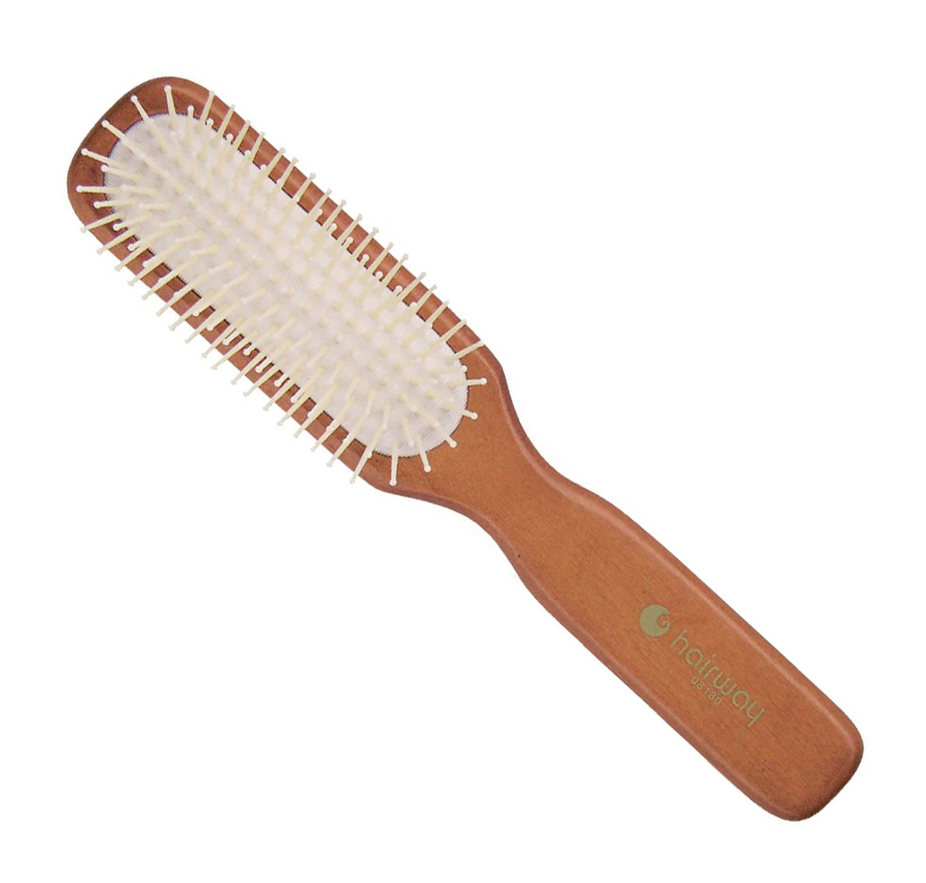 Деревянная прямоугольная щетка для волос White Cushion от Hairway на деревянной основе с пластиковыми штифтами идеально подходит для ежедневного ухода и является очень щадящей для волос. 7-рядная.