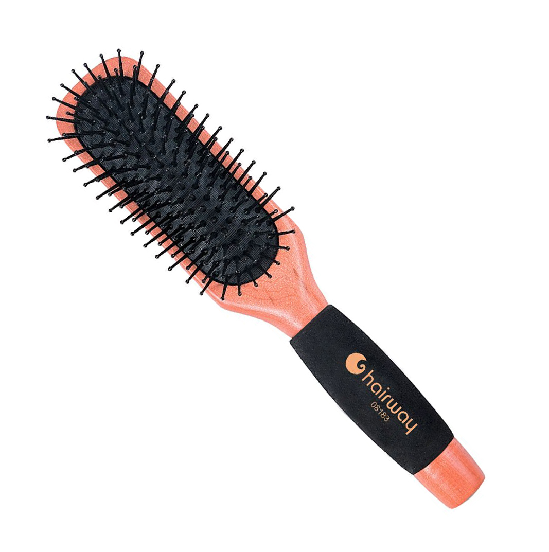Массажная щетка для волос Hairway серии Fancy на деревянной основе с нейлоновыми штифтами используется для комфортного расчесывания волос. Щетка имеет прямоугольную форму. Пластиковые штифты на мягкой подушке хорошо массируют кожу головы. Удобная полимерная ручка имеет легкий вес, что создает дополнительное удобство при использовании щетки.