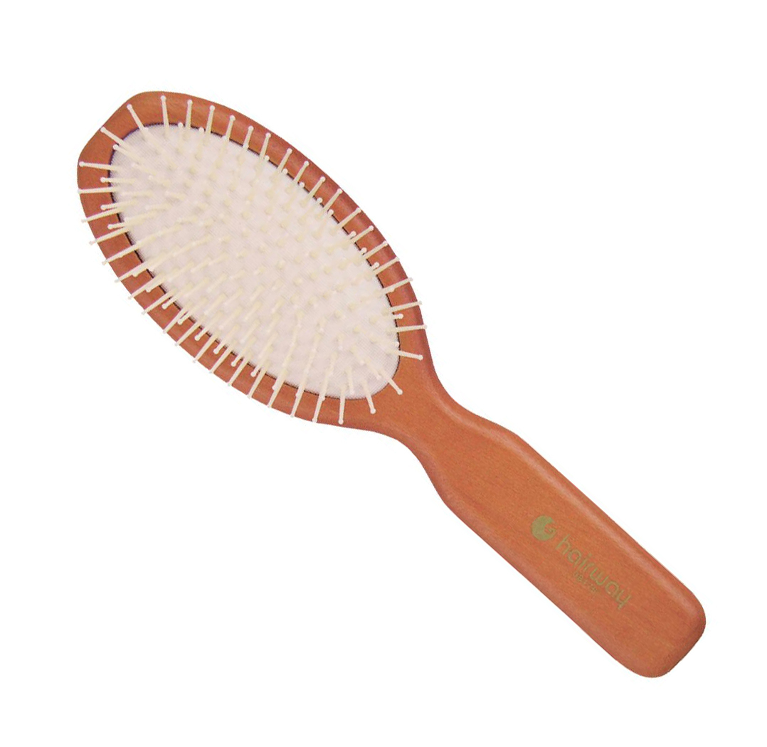 Массажная щетка для волос White Cushion от Hairway на деревянной основе с пластиковыми штифтами идеально подходит для ежедневного ухода и является очень щадящей для волос. 11-рядная.