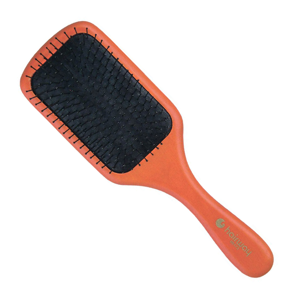 Массажная щетка для волос большая Black Cushion от Hairway на деревянной основе с металлическими штифтами и округлыми наконечниками в 13 рядов используется для расчесывания длинных волос.