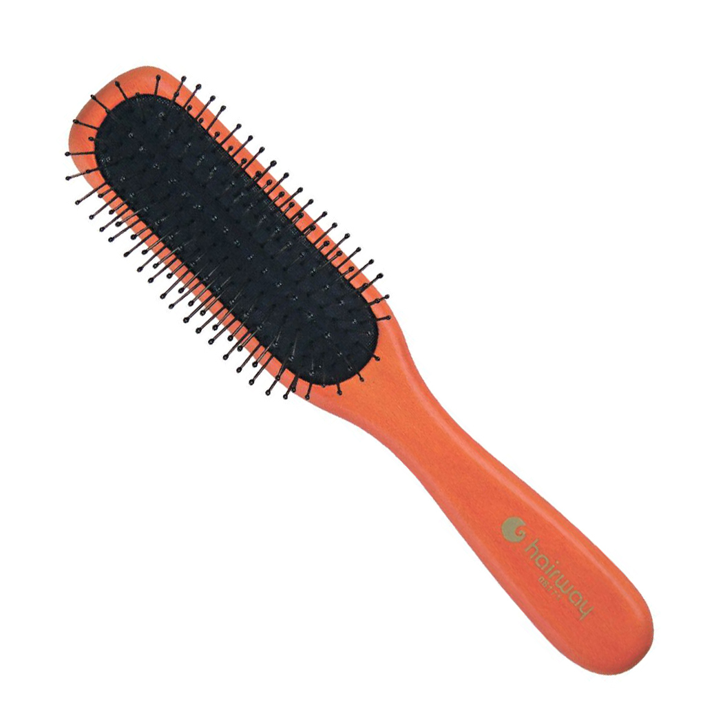 Массажная щетка для волос прямоугольная Black Cushion от Hairway на деревянной основе с металлическими штифтами и округлыми наконечниками в 7 рядов используется для расчесывания длинных волос.