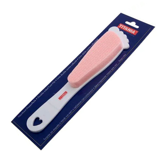Терка для педикюра Titania односторонняя в форме ступни изготовлена из пластика с наждачным абразивом. Купив терку для ног с пемзой форме ступни, Вы навсегда забудете о проблемах с пересыханием кожи и образованием ороговевшего покрова. Инструмент считается необходимым и в салонах красоты - его используют для выполнения процедуры педикюра. Отверстие в форме сердечка на конце ручки позволяет хранить инструмент в подвешенном состоянии.
