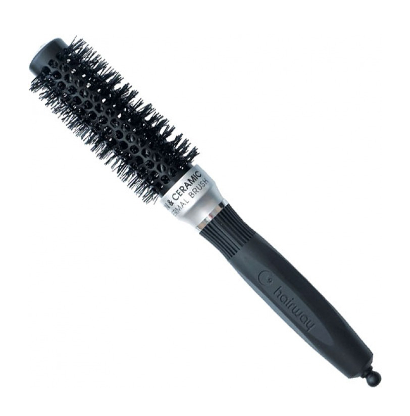 Термобрашинг для укладки волос Hairway Black Ceramic Ion черного цвета с керамико-ионным покрытием втулки и нейлоновой щетиной. Брашинг имеет овальные отверстия для более интенсивного прохождения горячего потока воздуха, сокращая тем самым время укладки. Многогранная прорезиненная ручка позволит надежно удерживать термобрашинг во время укладки волос. Разделитель прядей облегчит вашу работу.