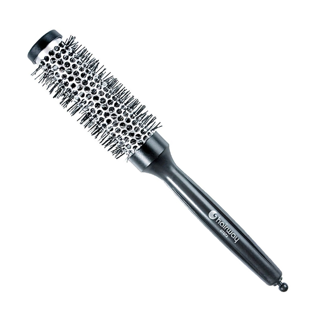 Термобрашинг для укладки волос Hairway Thermostyle черного цвета с алюминиевой втулкой, разделителем прядей и нейлоновой щетиной. Выполнена из высококачественного пластика с антистатическим покрытием. Брашинг имеет овальные отверстия для более интенсивного прохождения горячего потока воздуха, сокращая тем самым время укладки. Разделитель прядей облегчит вашу работу.