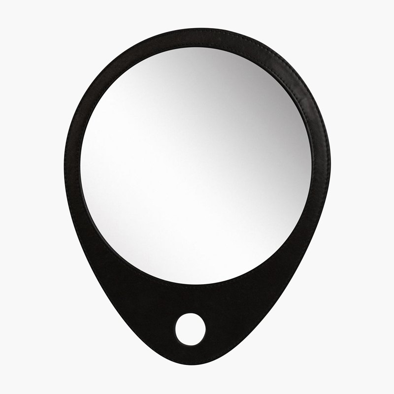 Зеркало представлено формой в виде капли, имеет отверстие для подвешивания на стену. Оно является незаменимым элементом в работе парикмахера. Небольших размеров, аккуратное зеркало должно присутствовать в каждом салоне красоты. Его также удобно держать в руке.